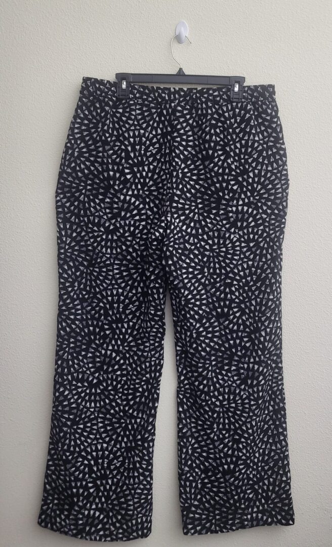 Wide leg comfortable elastic waist draw string black, gray and white women’s diamond abstract print Mossimo Palazzo 2 side pockets pants. Size L/G.